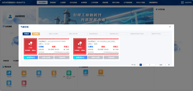 而定制开发的特殊作业审批系统,则进一步实现了安全管理的“全要素覆盖、全流程可控”。在档案管理维度,系统构建了多维度档案数据库,涵盖企业基础信息、部门工种配置、企业证书等企业档案,员工部门职务、证书信息等人事档案,化学品基本信息及出入库台账等化学品档案,重大危险源辨识、风险评估报告等区域档案,设备采购、运维、报废等全生命周期档案,以及工艺、仓库储存等生态静态档案,同时整合装置检修、开停车、执法检查等安全生产档案,形成“一档在手、全程可溯”的档案管理格局。针对资质证件、危险源辨识等关键事项,系统内置到期提醒功能,通过智能预警避免因证件过期、评估逾期引发的安全风险。