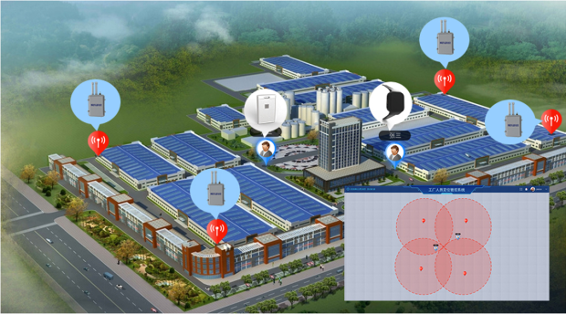 可实时记录人员的位置分布情况,可对员工进行不同工种分类管理,可有效对员工进行调遣安排、工作监督,提升生产效率;在发生危险时,可对即时了解工厂人员分布及疏散情况,可对滞留人员位置进行定位,从而进行快速救援。