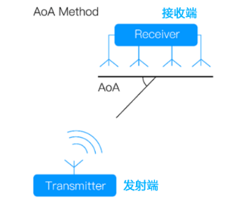到达角定位(AOA)是利用单一天线发射寻向讯号,而接收端的装置内建天线阵列,当信号通过时,会因阵列中接收到的不同距离,产生相位差异,进而计算出相对的信号方向,其技术原理如下所示: