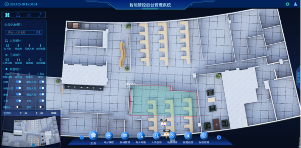 跟踪指定人员:地图可随着指定标签的移动跟踪自动切换。