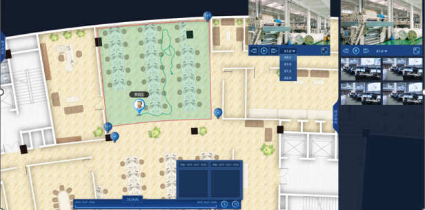 因禁入禁出触发报警或其他提前设定的报警时,系统视频窗口会立即弹出,通过视频监控监视目标。视频联动是由报警联动配置策略来绑定触发报警位置的视频设备,实现报警自动联动功能。