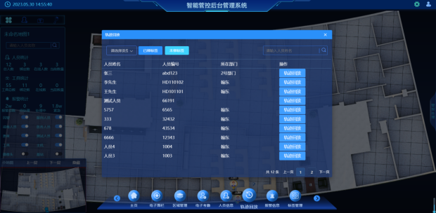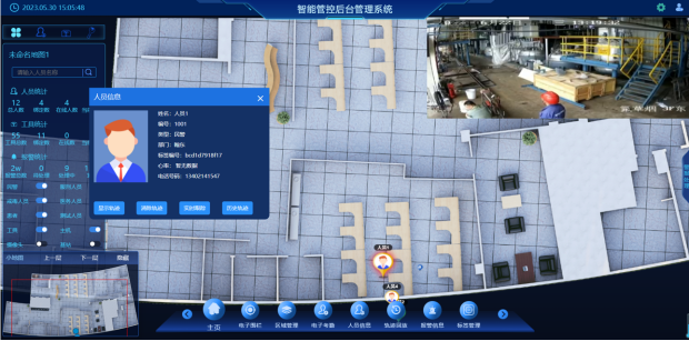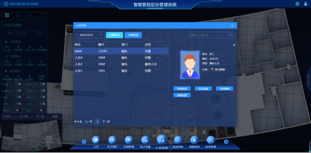 实时信息:可以实时显示定位区域内人员信息列表,在地图界面上,鼠标悬停或点击即可显示指定人员详细信息;并可根据不同图标区分不同类型人员。