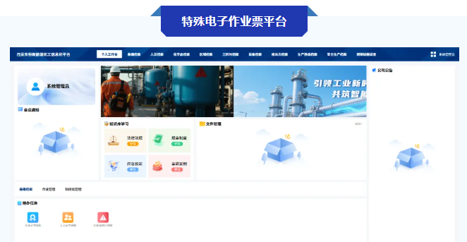 而定制开发的特殊作业审批系统,则进一步实现了安全管理的“全要素覆盖、全流程可控”。在档案管理维度,系统构建了多维度档案数据库,涵盖企业基础信息、部门工种配置、企业证书等企业档案,员工部门职务、证书信息等人事档案,化学品基本信息及出入库台账等化学品档案,重大危险源辨识、风险评估报告等区域档案,设备采购、运维、报废等全生命周期档案,以及工艺、仓库储存等生态静态档案,同时整合装置检修、开停车、执法检查等安全生产档案,形成“一档在手、全程可溯”的档案管理格局。针对资质证件、危险源辨识等关键事项,系统内置到期提醒功能,通过智能预警避免因证件过期、评估逾期引发的安全风险。