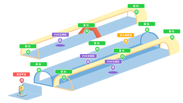 隧道对于人员定位而言是一个特殊而又恶劣的应用环境,无线电信号传输衰减大,GPS信号不能覆盖,只有使用具有针对性的室内定位技术才能满足人员管理需求。