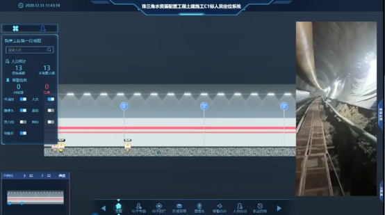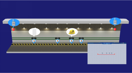 可实时记录人员的位置分布情况,可对员工进行不同工种分类管理,可有效对员工进行调遣安排、工作监督,提升生产效率;在发生危险时,可对即时了解隧道人员分布及疏散情况,可对滞留人员位置进行定位,从而进行快速救援。