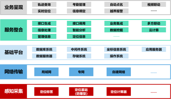 系统整体架构设计,以人员定位系统为基础,融合无线传感网络技术(UWB等技术)、视频监控技术等先进的信息化技术,实现对人员定位、视频联动、轨迹回放、电子围栏等子系统的功能整合,建设人员定位智能管控系统。