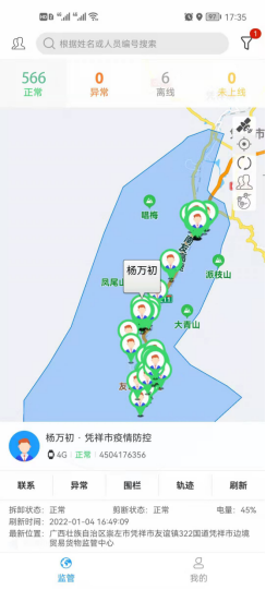 管理人员可在APP上查询精神患者人员围栏、在线状态等信息。