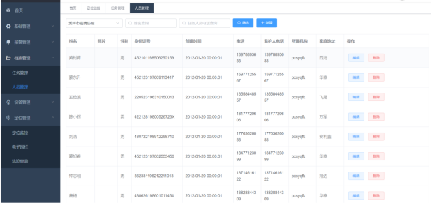 可通过平台进行人员进行档案创建,将档案信息录入到本平台,作为该佩戴人员的基本信息。