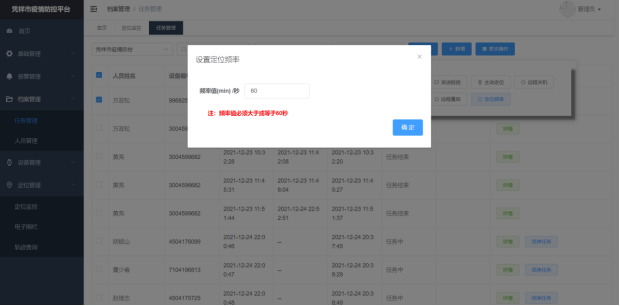 管理后台支持对设备进行定位频率修改,便于管理人员根据不同场景设置不同频率。