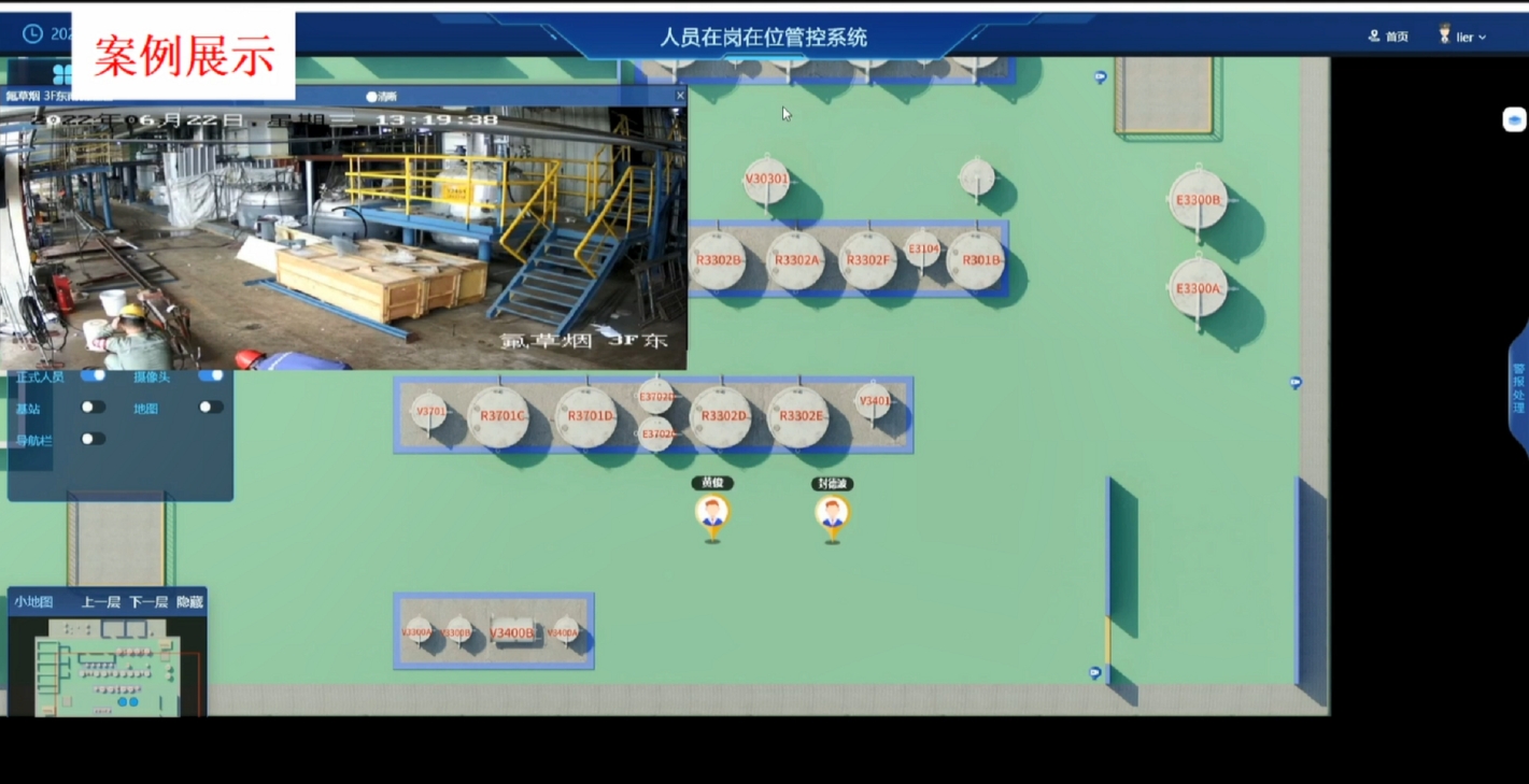 可实时记录人员的位置分布情况,可对员工进行不同工种分类管理,可有效对员工进行调遣安排、工作监督,提升生产效率;在发生危险时,可对即时了解电站人员分布及疏散情况,可对滞留人员位置进行定位,从而进行快速救援。