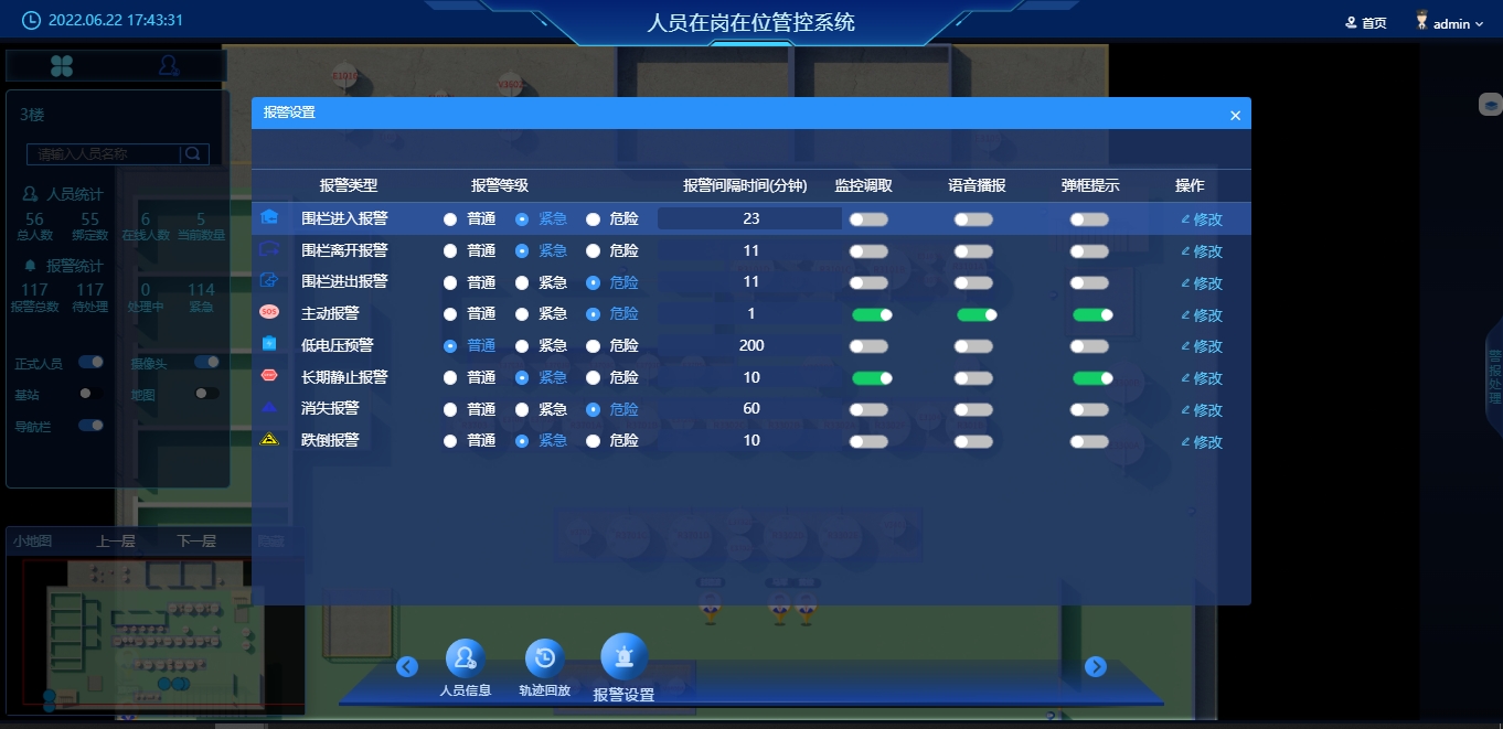 报警信息作为对事件管理的核心,报警信息包括了所有人员定位报警信息、主动求助报警信息、视频监控报警信息等,任何一类报警信息都尤为重要,关系到日常管理工作有序的开展。