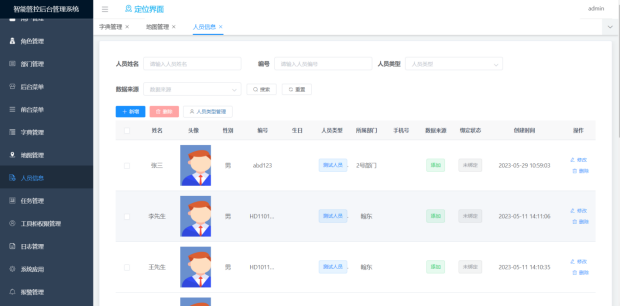 需要定位的人员信息新增、删除、修改和查询功能;支持自定义人员类型。