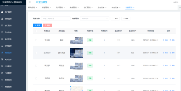 定位地图的新增、删除、修改功能;地图目前支持类型jpg、png;支持图片尺寸测量。