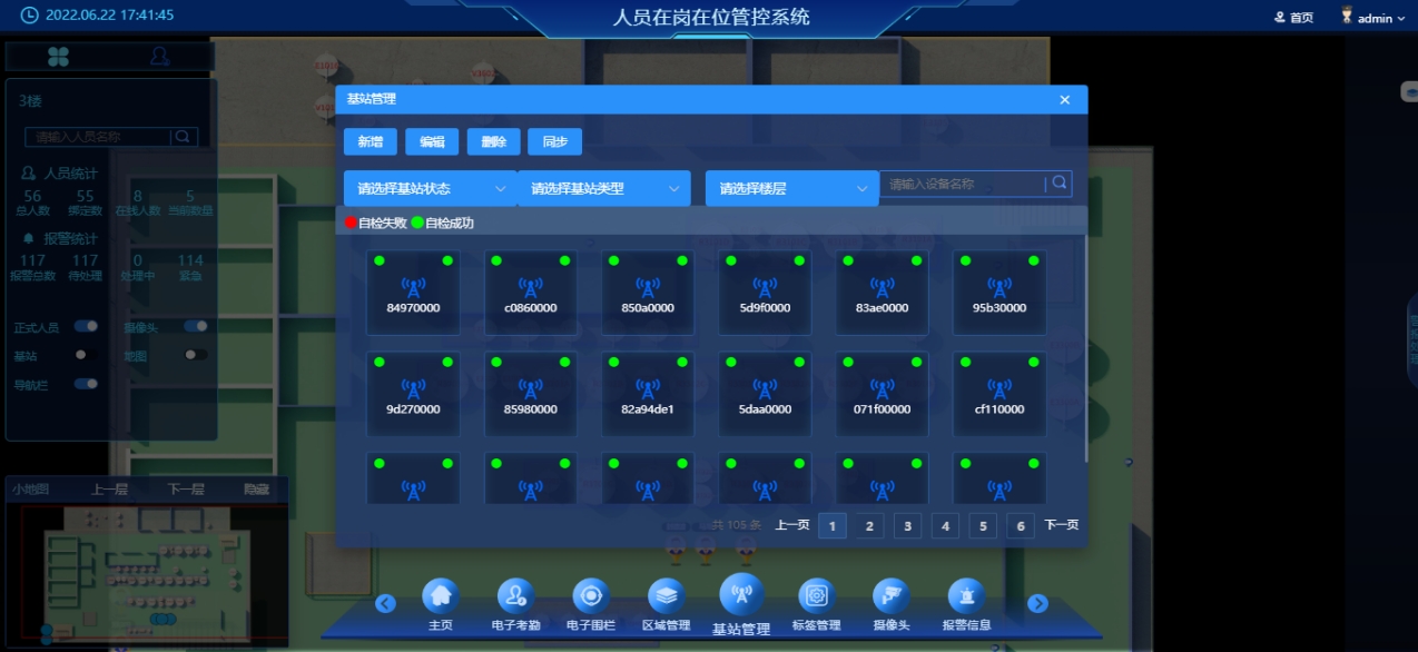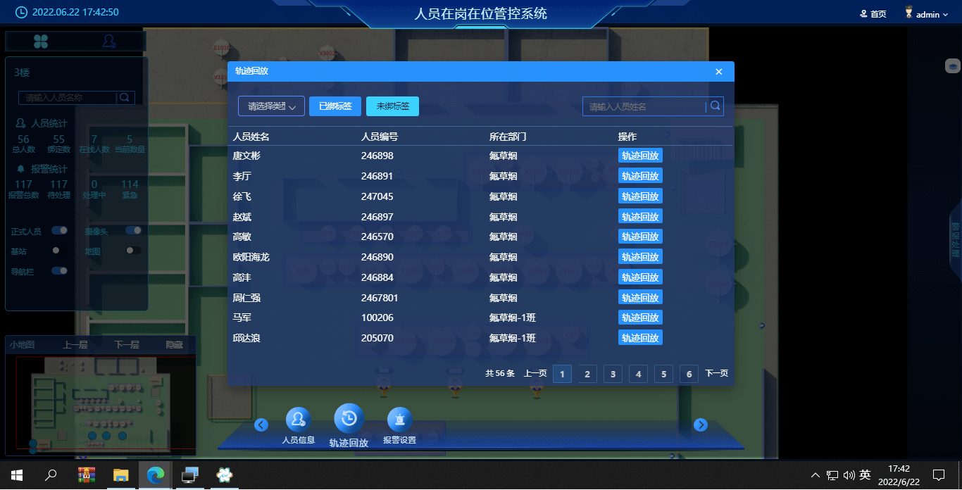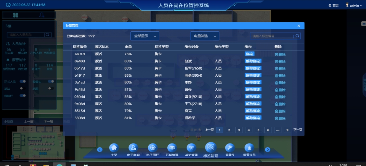 系统可以智能化的统计出在某个楼层内的人员到位情况,只要人员进入工作定位区域,系统会自动生统计数量,这样可以有效防止进入人数与实到人员不统一。