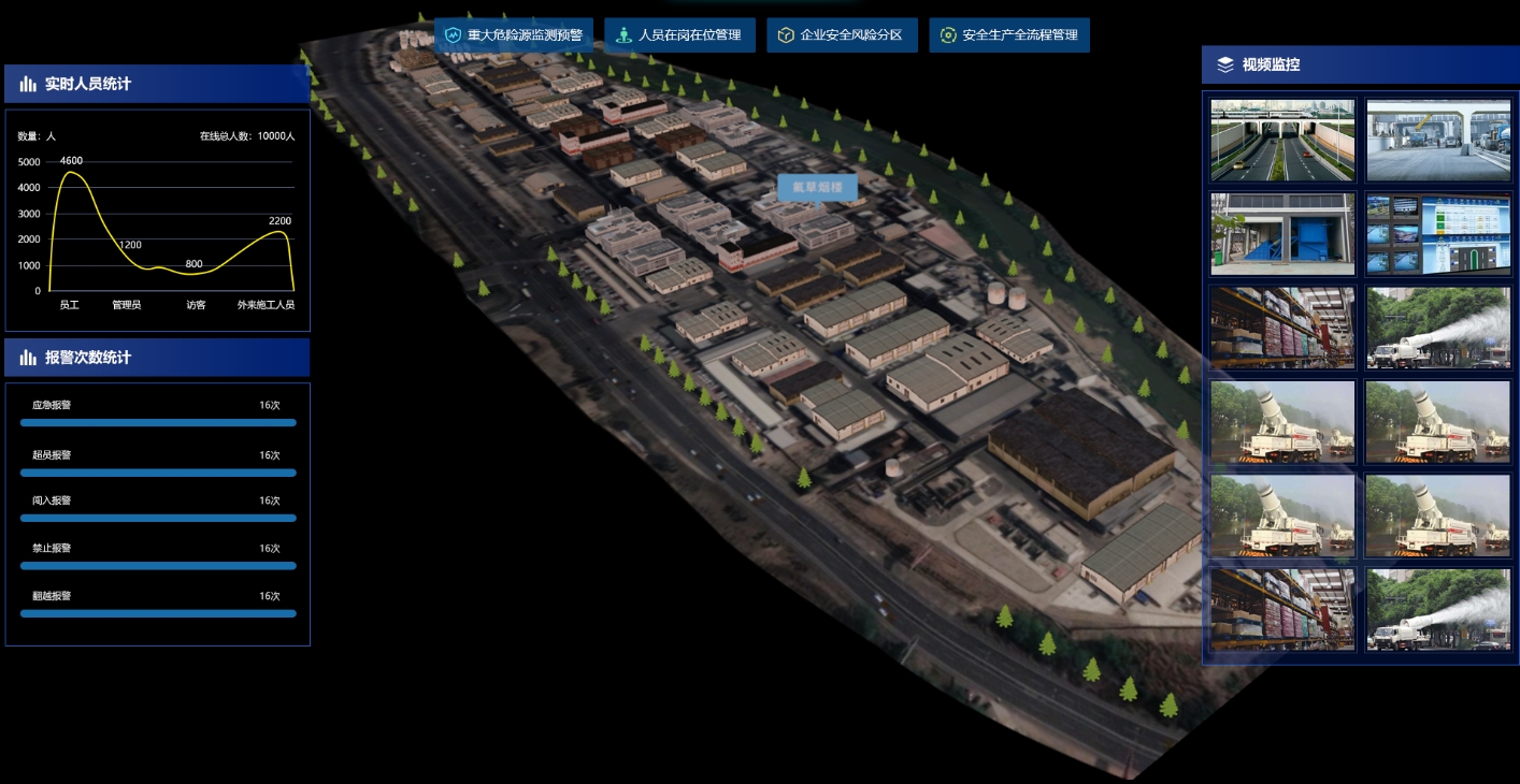 实时信息:可以实时显示工厂作业人员信息列表,在地图界面上,鼠标悬停或点击即可显示指定人员详细信息,如姓名、部门、岗位等信息;并可根据不同图标或颜色等区分不同类型人员。